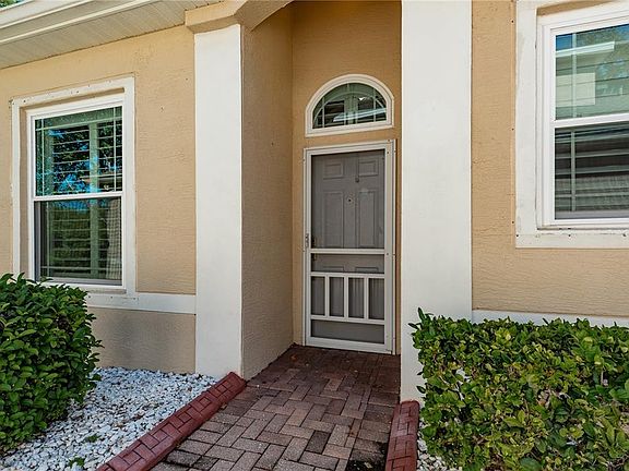 Wonderful Opportunity to own in this cozy Gated Community! This Villa has a private view and is within walking distance to the Pool! Enjoy the Open Floorplan with large Living Area and Dining Space featuring high ceilings. The Kitchen has upgraded Granite counters and includes an expansive Breakfast Bar. The Convection Oven also features an Air Fryer! There is ample cabinet space and a pantry area. You have room for a Coffee/Tea bar area or have a Bistro set near the Kitchen. The Primary Bedroom is a great size and has a beautiful private view through the Lanai. Enjoy the En Suite Bathroom with upgraded Dual Vanities and a Garden Tub as well as a Step In Shower with Glass access door! This split plan home features the 2nd Bedroom and main Bathroom in their own space. The 2nd Bedroom can transition to a Home Office if needed. Ceiling Fans accent most rooms and updated Light fixtures as well as recessed lighting highlights the home. There are wonderful Plantation Shutters highlighting the large windows. Updated Vinyl Plank flooring is throughout most of the Home! The screened Lanai is a great spot to relax! The Garage has textured expoxy flooring. The Exterior has a brick pavered driveway and entryway to the Villa! The Community has a lovely Pool area and a Gated entry. PETS are allowed! The affordable monthly maintenance fee covers the Roof, building exterior paint, grounds maintenance, recreation faciities, entry gate and private roads. Schedule a visit to see this great Villa today! Don't let it slip away!