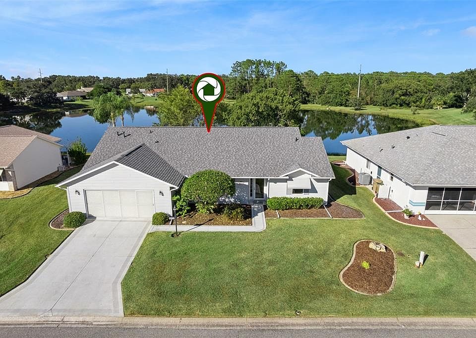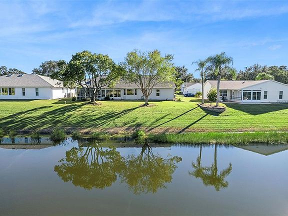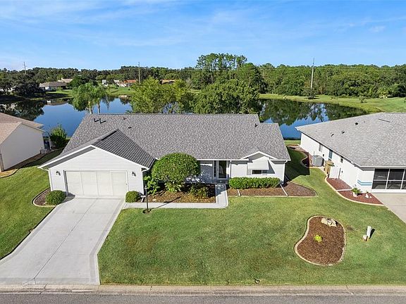 RENOVATED & ready for new owners! This WATERFRONT 3-bedroom, split floor plan, 2 full baths features DOUBLE PANE WINDOWS | HARDWOOD FLOORING | volume ceilings with KNOWCK-DOWN TEXTURE | custom wood cornices | an eat-in kitchen with WATER VIEWS of Lake Evert features CORIAN countertops | undermount sink | REFACED CABINETS | tile backsplash with glass tile inlay | STAINLESS STEEL APPLIANCES, including electric range | FOUR-SEASON SUNROOM over-looking the water and features a screen enclosed lanai beyond | INSIDE LAUNDRY, includes newer washer and dryer | An over-sized Master Retreat, boasts WATERVIEWS, HIS & HER WALK-IN CLOSETS, vaulted ceiling with plant shelf and an en suite bath, tile floor, CORIAN vanity top and dual sinks, GLASS BLOCK window, vaulted ceiling, SKYLIGHT for loads of natural light, GARDEN TUB and separate shower. The OVER-SIZED two car garage has 575sf of man cave. ROOF January 2023 | HVAC 2013 | Water heater 2009. Transferable termite warranty from Dean's Pest Control. Highland Lakes is a gated 55+ community situated in Central Florida just south of Leesburg & offers residents the following amenities: Recreational Clubhouse with two swimming pools; indoor (heated) & outdoor, a softball field complete with concession stand, an indoor arena with a stage for comm. events, complete kitchen, billiard/ping pong rm., 4 tennis courts (2 courts are lighted), 1 indoor tennis court, 8 lighted shuffle board courts, bocce ball courts, 2 outdoor and 4 indoor pickleball courts, 7 horseshoe pits, covered picnic pavilion with picnic tables & grills to barbeque, library, meeting/card room, exercise room/fitness, craft room, golf driving range, RV/boat storage (included in HOA) & has 260 spaces on a secured lot (fenced & lockable), a Craftsmen building/woodworking shop (homeowners can join the club for only $12 annually and use any/all tools available), there's also a Nature Trail within the community & seven lakes scattered throughout Highland Lakes; 4 are used by residents for catch & release fishing! Don't wait............. call now to schedule your private tour!