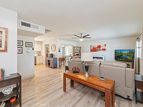 Beautiful turn key home. Loads of upgrades include flooring, bathroom, kitchen, plantation shutters, windows, and solar paid with 10 panels. Artificial grass in the back yard with a huge shed and gazebo. Refrigerator, Washer and Dryer included. Located in a 55+ age community with many amenities at the clubhouse.