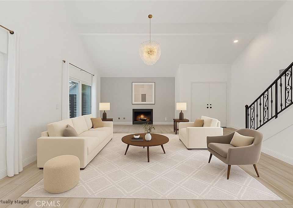 This beautiful 4-bedroom, 2.5-bathroom home in Mission Viejo combines stylish design with everyday comfort and functionality. From the moment you walk in, you're greeted by soaring vaulted ceilings, dual-pane windows that fill the home with natural light, and elegant light fixtures that create a warm, inviting ambiance.The open-concept layout features wide-plank wood-look tile flooring throughout the living areas and a custom staircase with wrought iron railings. The kitchen offers rich wood cabinetry, granite countertops, a full mosaic tile backsplash, soft-close drawers, a large center island, and ample storage—making it both attractive and practical. The spacious living area includes a modern fireplace and opens to a hardscaped backyard with tiered planting beds—ideal for entertaining or relaxing. A main-level primary suite provides direct backyard access and a private en-suite bathroom, while upstairs, three generously sized bedrooms offer flexibility, including one with its own private balcony. A dual-sink hallway bathroom serves the upstairs bedrooms. Additional features include paid-off solar panels, a paid-off GE water softener, PEX plumbing, and a garage equipped for an electric vehicle. Residents of the Lake Mission Viejo Association enjoy access to private beaches, boating, fishing, summer concerts, and more—all for a low semi-annual HOA fee.Conveniently located near Saddleback College, top-rated schools, major freeways, toll roads, shopping, and dining, this well-maintained home offers the best of South Orange County living.