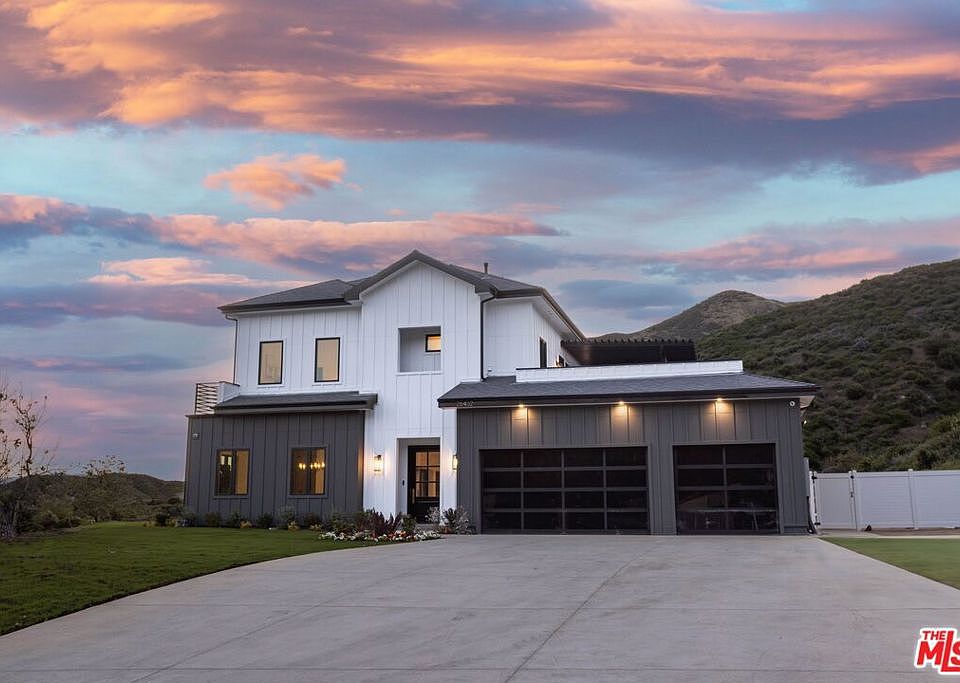 Experience the epitome of luxury living in this newly constructed, 5,355 square foot residence in a prestigious gated community in Santa Clarita, California. As you step into the grand foyer, you are greeted by soaring ceilings and a luminous open floor plan that seamlessly integrates living and dining spaces. The heart of the home is the chef's kitchen, featuring a spacious marble-topped island, custom cabinetry, a well-equipped pantry, and state-of-the-art appliances, perfect for culinary exploration. The first floor includes a private bedroom suite with a full bathroom, ideal for guests or as an in-law suite. Expansive accordion doors open from the living area to a covered patio, creating a fluid indoor-outdoor living space, complete with a built-in BBQ and a sparkling pool, perfect for entertaining and relaxation. Ascend to the second floor where the layout continues to impress with a generous loft space leading to three additional bedrooms. The luxurious master suite boasts a large walk-in closet and a spa-like en-suite bathroom. Across the loft, you'll find the third bedroom with its own bathroom, while the fourth bedroom sits privately on the opposite side of the house, also featuring a walk-in closet and private bathroom. Each space in this home is crafted with meticulous attention to detail and high-end finishes, offering an unparalleled living experience. Welcome to your new sanctuary where elegance meets comfort.