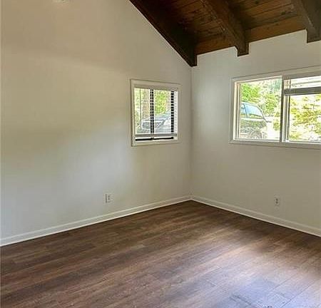Great location, Best schools in East Cobb!! Close to shops, restaurants, medical centers. This lovely wooded retreat features new flooring, new paint, new window shades, granite counter-tops, stainless steel appliances, new fixtures, vaulted ceilings, spacious master, stone fireplace stretches to ceiling. Huge private deck with nice view of nature, perfect for entertainment and relaxation. Non-smoking home. Minimum 2 year lease. Security deposit is one month rent. First and last month rents plus security deposit are required to be paid at move in.