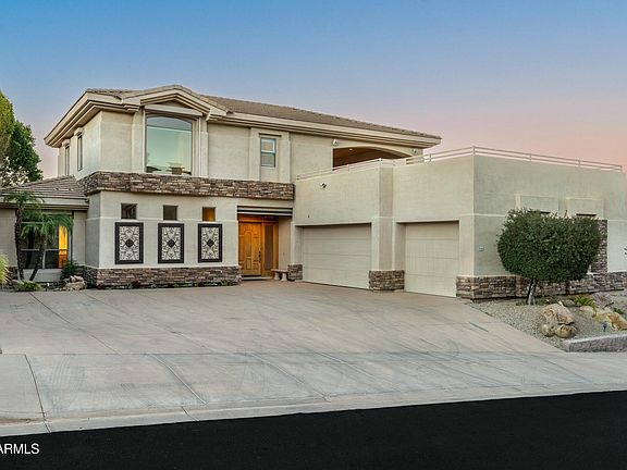 Step outside onto the expansive second-level balcony to take in the stunning 180 degree views, perfect for entertaining or quiet relaxation. The oversized 3-car garage is equipped with extra built-in cabinets and plenty of storage. Located in North Phoenix, this home combines serenity with convenience, offering proximity to prime shopping and dining and close proximity to the Mayo Clinic. Don't miss your opportunity to own this one-of-a-kind hillside retreat!