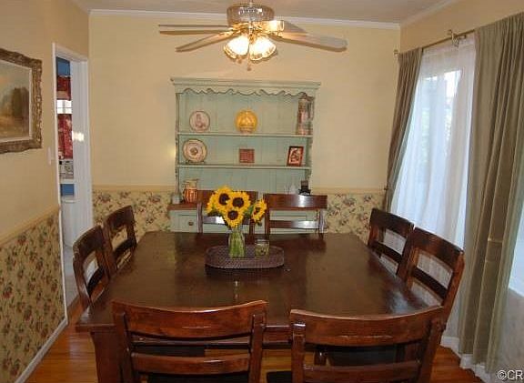 Marvelous Long Beach! Pride of Ownership 4 bedroom, 2 bath, 1,874 sqft, Family Room + Den. The home has a spacious, open floor plan with plenty of natural light. As you enter, you see the refinished hardwood floors through the open dining and family room. The family room has a brick hearth with maple-style mantle piece, crown and base molding. The Kitchen shows with contemporary colors, tiled counters and backsplash, large windows, tiled floors and classic painted cabinets. The quaint dining room has tasteful color, crown, base and chair molding, and a ceiling fan. The den is carpeted with crown and base molding, and a sliding glass door onto the patio. The Master bedroom has large mirrored, sliding closet doors, lots of windows, and is carpeted. The bedrooms have tasteful colors, crown and base molding, and original refinished hardwood flooring. The bathrooms have tasteful colors with molding and updated fixtures.