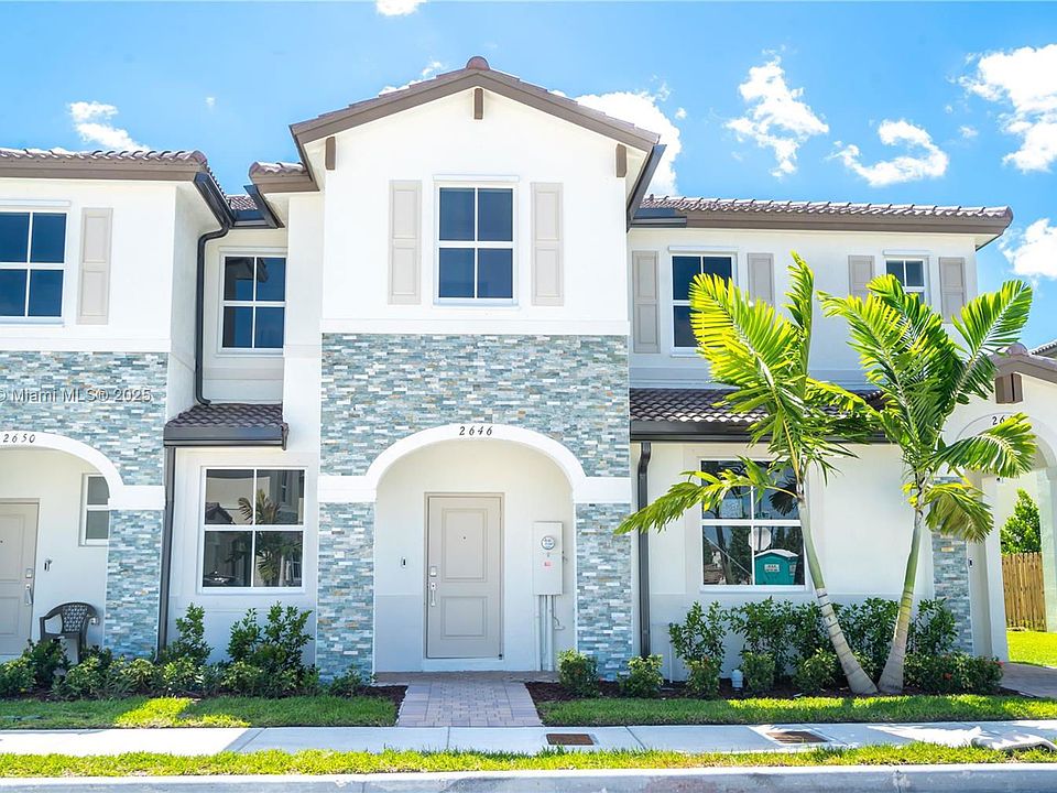 Beautiful 3-Bedroom, 2.5-bathroom Villa located in the desirable gated community of Lagos at Altamira. This spacious home features nice kitchen with stainless steel appliances, a generously sized living, family room, and a large master suite with a walk-in closet. Tile Flooring throughout the first floor and carpet upstairs, the second floor. Large Patio, 2 assigned parking spaces and additional guest parking. Some photos have staging.