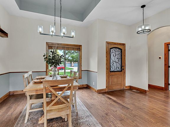 Welcome home to this stunning retreat in the highly desirable WaterMarke community of Valley Center! Perfectly positioned on a quiet cul-de-sac, this thoughtfully updated home combines small-town charm with modern comfort — all just a short drive to Wichita. Inside, you’ll be greeted by a warm and open layout featuring 5 spacious bedrooms and 3 bathrooms. The main living area showcases a beautiful stone fireplace, custom built-ins, and large windows that bring in all the natural light. The kitchen has been updated with gorgeous quartz countertops, a generous island, and ample cabinet space — ideal for entertaining or everyday living. The primary suite offers a peaceful retreat with deck access, a private bath, dual sinks, and a large walk-in closet. One additional bedroom and a full bath complete the main floor. Downstairs, the fully finished basement expands your living space with a wet bar, roomy family area, extra full bathroom and three more bedrooms, providing the perfect setup for guests or game nights. Step outside to your private backyard oasis — the covered deck (only 4 years old) features a built-in TV, making it perfect for relaxing or watching the big game. Enjoy evenings in the hot tub, and appreciate the well and sprinkler system that keep your yard green and low-maintenance all year long. Located in the award-winning Valley Center School District, WaterMarke offers a true sense of community with nearby walking paths, a neighborhood pool, and easy access to local parks, stores and conveniences. Whether you’re looking for cozy evenings by the fireplace or quiet mornings on the deck, this home delivers comfort and connection in every detail. Experience the best of small-town living with a quick commute to the city!! Schedule your private tour today!