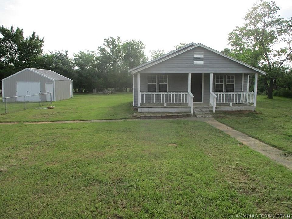 Great starter home or commercial property. Half of the home has been remodeled with new carpet and Laminate floors. The Kitchen is big with lots of cabinet space, and a huge laundry room. There is a nice front porch, a big storm cellar and a 19'x23' shop.