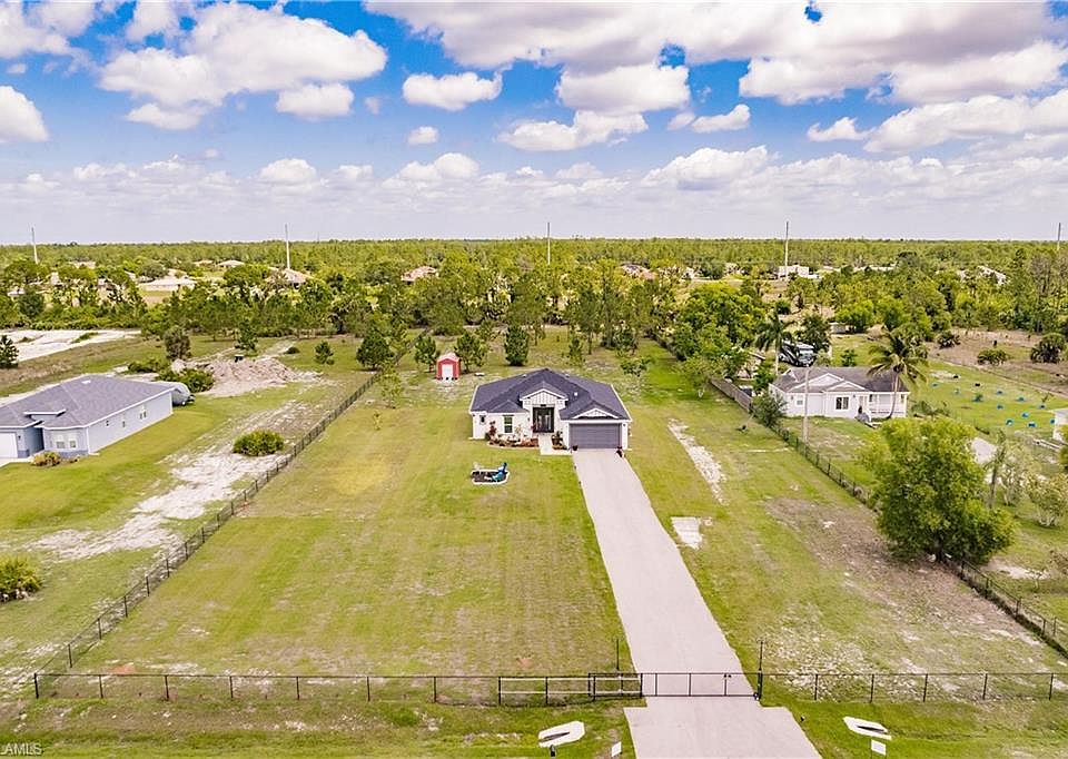 2.5 ACRE NO HOA/CDD! This property has all the comforts of private, country-style living. 4/2 upgrades notable in comparison to other new construction. Includes $10k tile throughout upgrade, 50 amps Connection for a Generator to power your home, large tank reverse Osmosis, 10x20 brand new Shed for storage, property is fenced with black chain-link, Irrigation system, Quartz countertop in the kitchen and bathrooms. Under Cabinet Lighting, self-closing cabinets. Large kitchen perfect for hosting while overlooking the stunning backyard. A screened porch, ready for that beautiful new pool in the future. This property includes, well/septic water, washer/dryer, range, refrigerator, ceiling fans in every room, includes a John Deere 2022 0 turn lawnmower and landscaping tools. The house can be left furnished (negotiable). Master bedroom features large walk-in closet, and his closet. Dual Vanity, large shower. Home is turnkey ready for your family, great quality compared to new construction. If you're looking to enjoy all of the beauty and amenities of Naples while also having a private retreat and amazing neighbors this is the home for you! Home priced BELOW appraisal of $695k as od 6/1/23