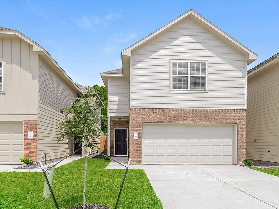 The Duffy II Plan offers 1,425 square feet of modern two-story living with thoughtful design and everyday comfort. All three bedrooms are located upstairs, including a spacious primary suite with a walk-in closet and private bath. The open-concept main floor connects the kitchen, dining, and living areas—perfect for both entertaining and daily routines. A fenced backyard, two-car garage, and sprinkler system round out this functional and inviting home. All homes are SimplyMaintained for a $100 monthly fee covering front and back yard lawn care and exterior pest control.