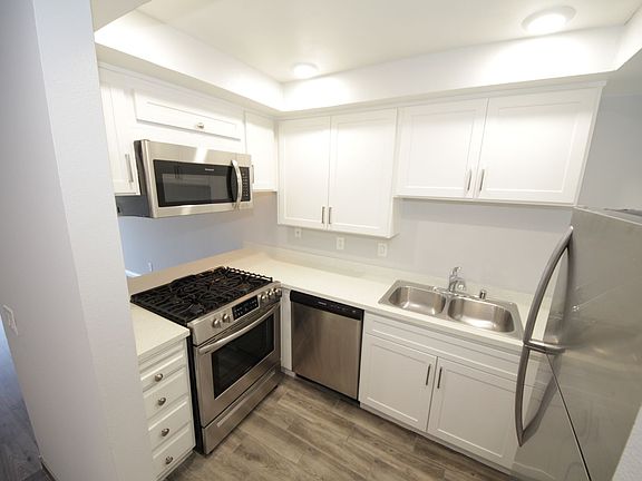 White quartz countertopsItalian style deep sinkMicrowave with micro-hoodNew stainless steel appliancesWaterproof laminate flooringCentral ac and heatCustom cabinets