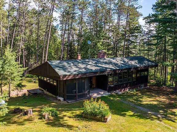 This 4 bedroom, 2 bath home features banks of windows, a library/music room and extra kitchen in lower level. Semi-open concept on both floors with 3,000 square feet of living space. Interior sauna, two fireplaces and enclosed large screen porch. Enormous pine trees on a wooded quiet setting in the Burntside State Forest. Nearby public access to Burntside Lake and located just 5 miles from Ely. Single car garage on lower level with additional two car, two story detached garage. Driveway access on both sides of property. House design and location offer wonderful wildlife viewing. Handicap accessible throughout including a residential elevator.