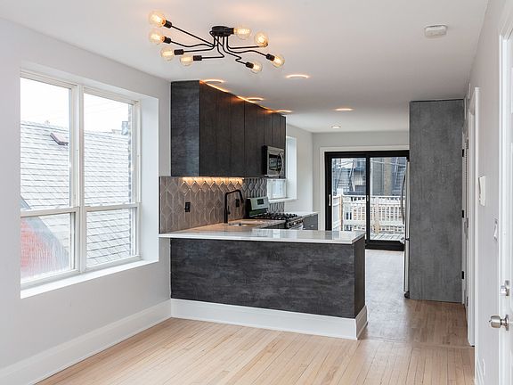 Modern floorsLarge front-facing windowsIn-unit laundryTop-floor unitOpen-concept layoutsQuiet tree-lined one-way streetRenovated kitchen