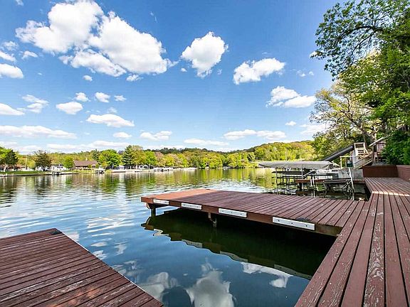 Turn key lake property! Everything is here, furniture, two jet ski's with double trailer, new boat lift one month old! Bring your groceries and clothes and you are good to go at Lake Delhi! This property has a continuous one hundred twenty six feet of boardwalk style docking complete with patio/sunning deck! Large enclosed patio with full windows allowing panoramic views of boaters! Let's get you in here to enjoy the summer!