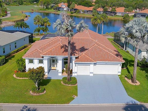 Welcome to this magnificent single-family home located in the exclusive, gated, bundled golf community of Highland Woods. Rarely on the market, this property offers a 3-car garage and picturesque lake views. It comprises 4 generously sized bedrooms and 3 full bathrooms. The home’s interior features soaring vaulted ceilings, and is equipped with impact windows and storm shutters for added security. Enjoy sweeping sunset views from the comfort of your home. Recent updates include a newly installed roof in 2024 and a modernized kitchen, enhancing its many standout features. Highland Woods is celebrated for its outstanding amenities, including an 18-hole championship golf course, three bocce courts, four tennis courts, a large community pool complete with a cabana bar and restaurant, a cutting-edge fitness center, and a stunning clubhouse featuring dining and grill rooms. Situated in the vibrant heart of sunny Southwest Florida, this home is conveniently located near the Promenade of Bonita Springs, Coconut Point Mall, the Shops at Mercato, and the stunning Gulf of Mexico, just four miles away. This property promises a relaxed, luxurious lifestyle in a prime setting. Don’t miss the opportunity to make this exceptional home yours—schedule a viewing today and experience the unparalleled offerings of Highland Woods.