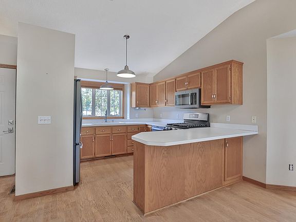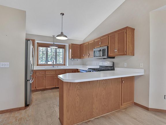 Welcome to this 3 bed, 2 bath walk-out home. This home features vaulted ceilings ,race track ceilings in dining and living rooms, hardwood floors, walk-in-closets in the upper 2 bedrooms, both bathrooms with ceramic surround, 16x15 deck and newer garage door. Main level consists of the dining room and kitchen. Kitchen has stainless steel appliances, window box and breakfast counter. Upper level has 2 bedrooms, full bath and living room. Lower level has workshop/storage area and laundry room with utility sink along with the 3rd bedroom and 3/4 bath.