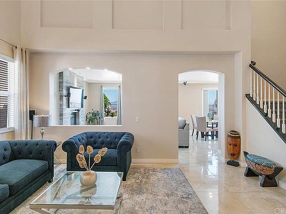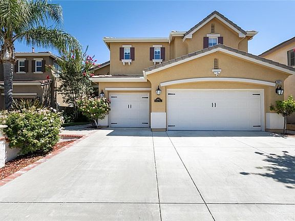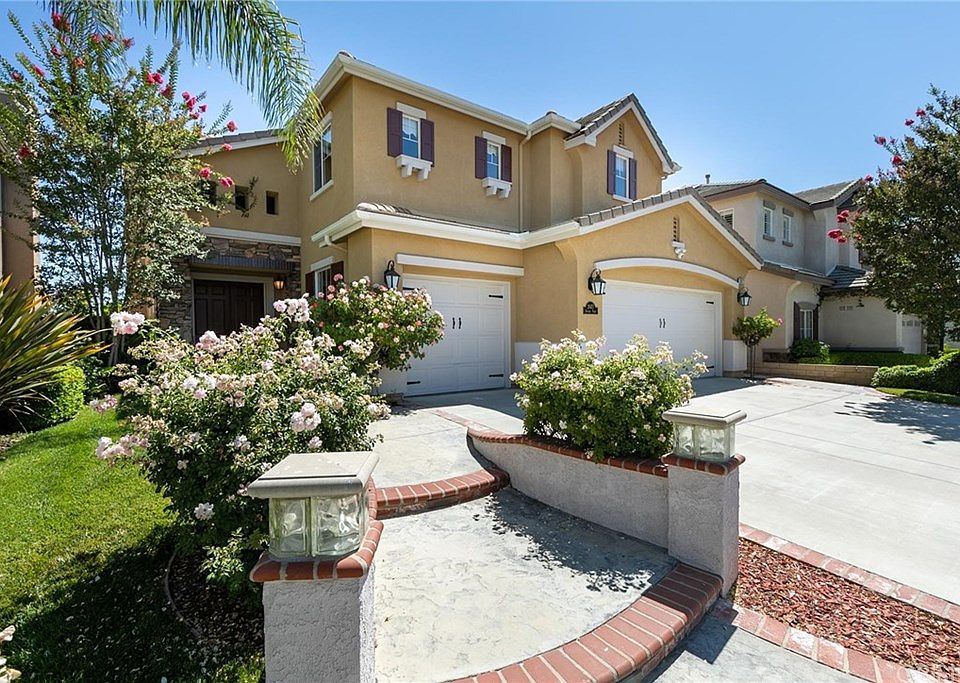 Beautiful Stevenson Ranch VIEW home located at the end of a popular, flat, cul-de-sac street. With nearly 3200 sqft, this home features 5 spacious bedrooms, (one full bedroom and bathroom downstairs). Interior features include a light and bright open floorplan with separate formal dining room and living room with vaulted ceilings. Gourmet kitchen is complete with granite counter tops, stainless steel appliances, double ovens, breakfast eating area, island with breakfast bar and ample cabinet space. The kitchen has a slider for direct access to the backyard and opens to the over-sized family room with a stunningly designed fireplace and lots of natural light. The oversized master bedroom suite features magnificent views! The master bath features his and hers vanities, jetted tub, separate shower with steamer and dual walk-in closets. Outside you'll find a pool sized backyard with a large concrete patio seating area, built in BBQ, fire pit, ample grassy area and stunning city/mountain views! Other highlights include fresh neutral designer paint throughout, surround sound, updated dining chandelier, updated flooring, recessed lighting, dual A/C, spacious laundry room with sink and a three car garage. Prime location- easy freeway access, close to shopping, restaurants, Richard Rioux Park and walking distance to the award winning Stevenson Ranch Elementary!
