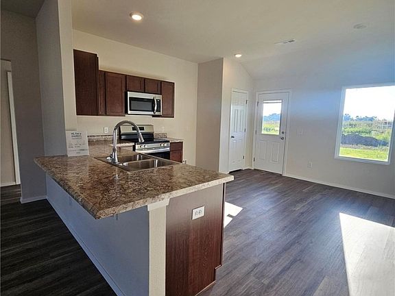 The stunning Carnegie plan is rich with curb appeal with its cozy covered entryway and front yard landscaping. This home features 4 bedrooms, 2 bathrooms, a large living room, a kitchen fully equipped with energy-efficient appliances, abundant counterspace, and a pantry. The laundry room, conveniently located just off the garage, is perfect for any sized family. The master suite features a walk-in closet.