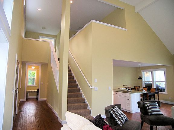 This beautiful contemporary 3 bd, 2.5 bath home built in 2007 features the high end touches you are looking for; granite counter tops & tile throughout, stainless steel appliances (incl. a Thermador Prof. range), engineered hickory floors & huge Trex deck overlooking the water. Vaulted ceilings w/ floor to ceiling windows capture the water view of Hales Passage. A GIANT finished daylight basement serves as a great multi-purpose space! Stairs to the beach just steps from the door. Come see!