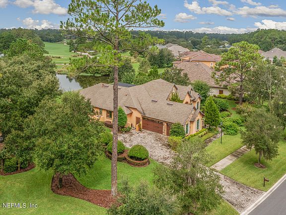 Welcome to your dream English cottage-inspired home, nestled on the picturesque shores of a serene lake with stunning golf course views behind the gates of The King & The Bear. This exquisite Arthur Rutenberg modified St. Augustine floorplan captivates from the moment you arrive, boasting a custom-designed elevation that perfectly marries charm and sophistication. Situated on a pristine 0.57-acre estate lot in Oakgrove Estates, you'll love the privacy and stunning lake to golf views here.