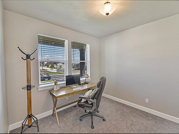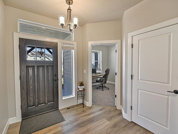 Discover this beautiful two-story home built by Camden Homes, blending NW modern style with timeless craftsman details. The main level includes a versatile office/den, a convenient half bath, and a chef-inspired kitchen complete with a built-in buffet and sleek modern appliances. The open-concept design flows into the dining space and living room, where a gas fireplace creates a warm focal point. Expansive windows frame breathtaking views of Mica Peak and the Southern Selkirk Mountains. Step through the slider to a covered patio and landscaped backyard, complete with a stone path that leads to a cozy firepit. Upstairs, a spacious loft provides a second family room or media area. The primary suite features a mud-set walk-in shower, soaking tub, private water closet, and oversized walk-in closet. The lower level is partially finished, offering roughed-in plumbing, egress windows, and included drywall on-site, making it ready for future expansion. Other amenities include tankless hot water, and smart thermostat.