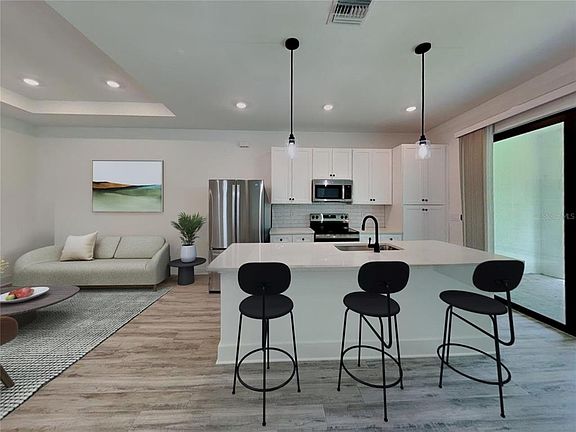 Quartz countersPainted lanai with screensHigh ceilingsMoen faucetsHurricane impact windowsStainless appliancesBrick paver driveway
