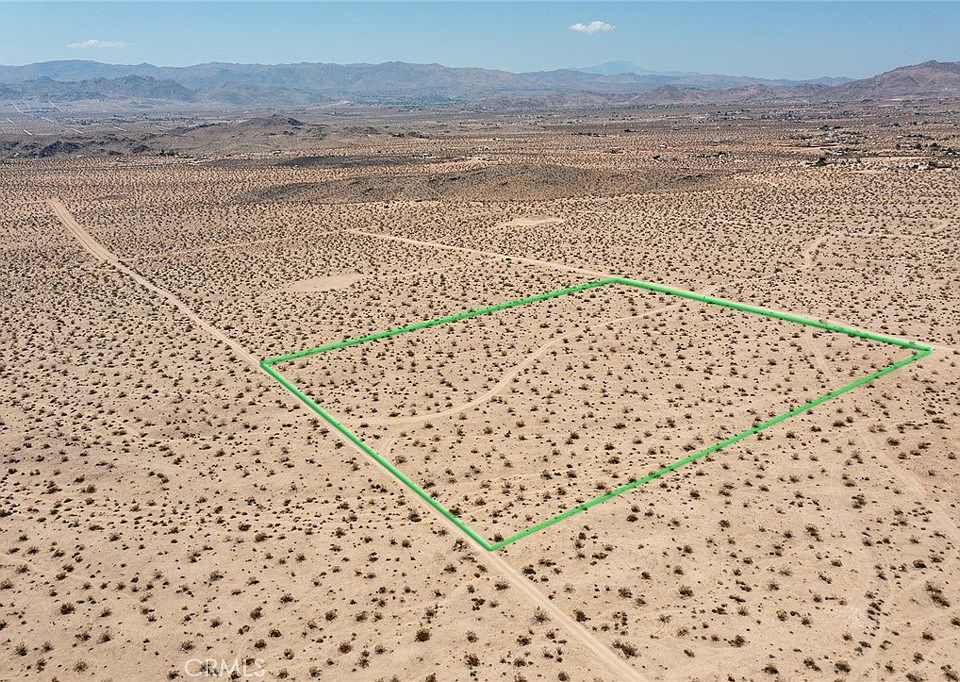 10-ACRES: Surrounded by wilderness. Forever views. Mountains of Joshua Tree National Park to the south. Located on a mesa above the ancient dry lake bed below. NOTE: Green lines demarcating boundaries in pictures are approximate. APN: 0606-321-10