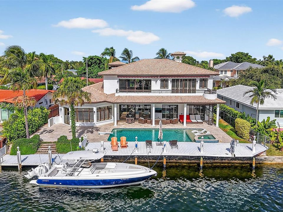 Rare Rental Opportunity in the marina community of Lighthouse Point. *Unique lot w/90 ft dock on deep water plus a long water view down the canal.* All impact windows & doors, 1st floor: Grand Double door entry w/ tall ceilings, Bar, formal Dining, family & living room, Marble Floors, large granite & wood kitchen w/ stainless steel appliances, cabana bath, laundry room,1/2 bath, 4 full bedrooms w/ en-suite baths. 2nd level: office (5th bed), giant owner's suite w/ dual walk in closets & balcony overlooking the water. Large circular driveway for many cars, grass side yard for pets, large pool & jacuzzi, plenty of covered area for entertaining, Family Friendly neighborhood, walk to Nauti Dawg and Cap's Place, minutes from shops, restaurants, beach. Furnished or unfurnished available.