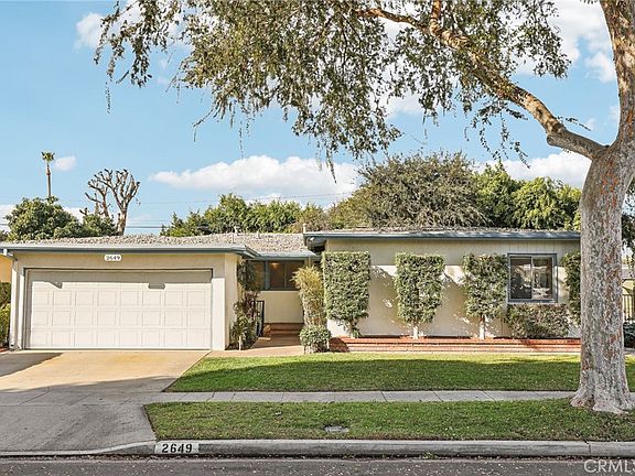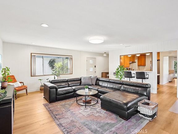 Welcome home to this charming mid-century gem in the coveted Los Altos neighborhood of Long Beach! Combining the best of both floorplan worlds - open-concept & formal - a sprawling living room greets entrants to the home, replete with recessed lighting, storage, and a built-in workstation. Adjacent is a breakfast bar and pass-through to the kitchen, featuring vintage cabinetry upgraded with quartz counters and stainless appliances. Past a separate in-home laundry room, a sizable formal dining area leads into a cozy family room at the rear of the home, featuring a masonry fireplace with new gas log set, and sliding door leading to the backyard. The south wing hosts all three bedrooms and both bathrooms for the home, including the primary ensuite with in-room bath. Beautifully preserved built-ins and details of the home are complimented by modern system upgrades, including the new, high-efficiency HVAC heat pump system and upgraded 200A electrical panel & wiring. Located in a prime Long Beach school district, and close to all East LB has to offer, this is one that can't be missed!