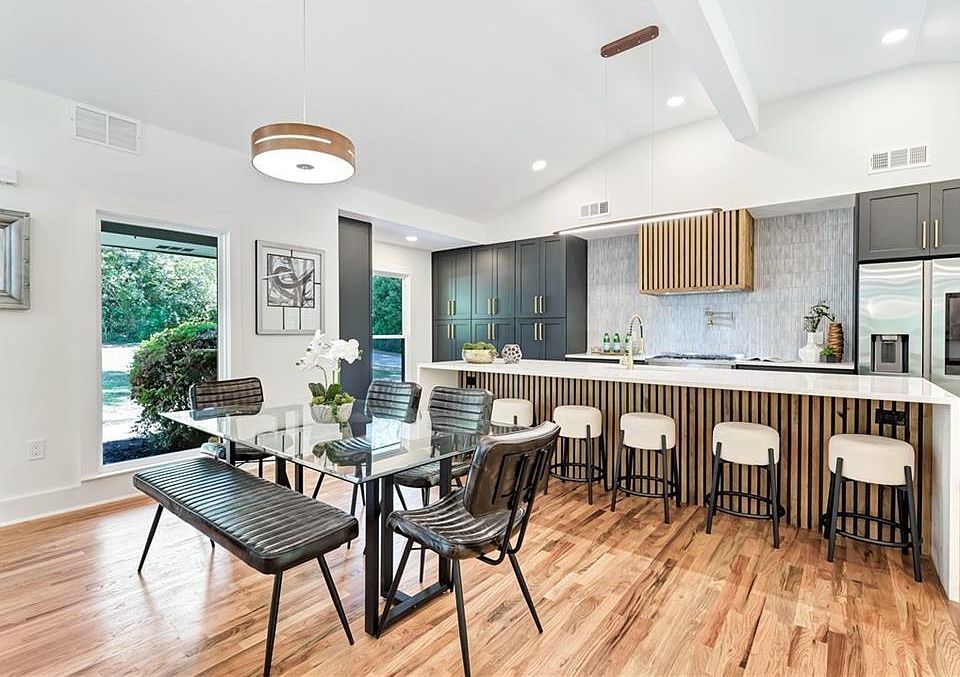 EXCEPTIONAL property!! Welcome to 2649 Sunrise, where classic mid-century modern aesthetics blend seamlessly with contemporary luxury, creating a stunning living experience. This meticulously crafted home boasts 97% new construction, showcasing a meticulous attention to detail and high-quality materials throughout. Upon entering, the BRAND NEW solid hardwood flooring throughout the first floor embraces you in warmth and elegance. The kitchen is a chef's delight, featuring sleek stainless steel high-end appliances including a new fridge/freezer, cooktop/stove, custom vent hood, pot-filler, and designer backsplash. The gorgeous quartz countertops, custom lighting fixtures, and cabinet colors amplify the space with natural light, enhancing its sophisticated atmosphere. A huge 11-foot by 4-foot kitchen island provides seating for 6 people, perfect for gatherings and casual dining. Entertainment is at its finest in this home, with panoramic views of the beautiful yard from the main level. The main floor comprises 3 bedrooms and 3 full bathrooms, each adorned with top-notch materials and fixtures. The master suite is a sanctuary, with a generously sized closet featuring custom built-ins and a master bath oasis boasting double vanity quartz countertops, a large soaking tub, and a beautifully tiled shower. The lower level offers two additional bedrooms, a full bathroom, and a bonus half bathroom. The basement is expansive, including a bonus room perfect for a gym area or flex space, a yoga studio for wellness activities, a wet bar for entertaining, and a spacious entertainment area for gatherings. The garage floors are coated with durable epoxy for a polished look, complementing the BRAND NEW windows and custom-made driveway, adding charm and functionality to the property. One of the secondary bedrooms even provides balcony access, inviting you to enjoy the outdoors from the comfort of your own room. All bedrooms are spacious, ensuring comfort and relaxation for everyone in the household. Conveniently located just minutes from Midtown, Beltway, and major highways like I-285/85, this home offers both luxury and accessibility.