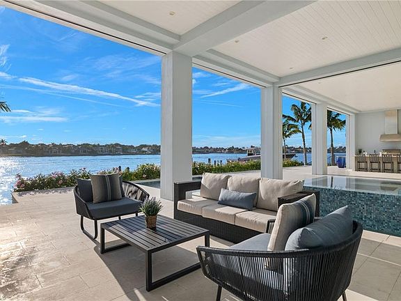Welcome to 2649 Tarpon Road in prime Royal Harbor location boasting 100 feet of stunning Naples Bay frontage. Built in 2019 by Big Island Builders this incredibly designed western facing custom home features 5 Bedrooms and 6 Baths in almost 5300 square feet of living space under A/C. Enter the dramatic foyer to courtyard views of the outdoor saltwater pool, spa, fountain and bay views. Dramatic ceiling heights throughout and handsome wide plank hardwood floors. Impeccable craftsmanship and attention to detail throughout. Lovely office with custom built-ins. Open-concept living area with walls of sliding seamlessly blending indoor/outdoor living. A true chef's Eat-in Kitchen replete with Sub-Zero and Wolf appliances. Spacious Living Room with custom built-ins designed by Clive Daniel. Step out to your outdoor dream living space ideal for entertaining outdoor built-in kitchen plus separate living area with linear gas fireplace and custom mantle. Dock accommodates a 36' boat plus jet ski lift. Master suite oasis complete with large Bedroom opening out to pool area, 2 oversized walk-in closets with custom built-ins and a spa-like bathroom with oversized marble walk-in shower, separate vanities, water closet and soaking tub. A second guest suite, large laundry room, storage room and pool half bathroom complete this living floor. Upstairs are 2 separate quarters ideal for guests, live-in staff, in-law quarters, office, gym or studio. Easy access to downtown and beaches. Truly an exceptional home and setting.