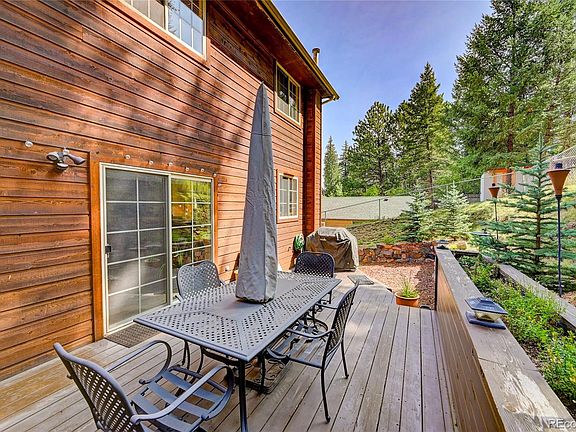 Close to Evergreen, in the quiet community of Kittredge, this newer and beautifully maintained ½ of a duplex is located in a quiet, convenient location, with an easy open floor plan, on a quiet, county-maintained road & it is move in ready! The kitchen is spacious, featuring hardwood floors, stainless appliances and cherry cabinets, center island with bar height seating for casual dining. It is light and bright and open to the living room and dining area with a sliding glass door to the private back yard and deck with an area for a garden. The private back-yard faces south for sunny exposure and easy dining outside on the deck. Upstairs you will find 3 bedrooms including the master bedroom with a ¾ master bathroom and walk in closet, two secondary bedrooms and a full bathroom. The lower level is a walk out and that is where you will find the laundry room with cabinets for storage, a sink and the washer/dryer are included. There are no HOA dues! The two-car attached garage is over sized and the Kittredge Community Center is close by.