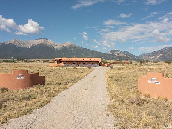 A captivating Southwest-style gem nestled in the heart of Buena Vista, CO. With its picturesque backdrop of majestic mountains, this property offers not just a home, but an idyllic mountain lifestyle. Boasting 1920 square feet of thoughtfully designed living space, this residence encompasses 3 bedrooms and 2 full bathrooms. Oversized 2 car attached garage! Step inside to discover a harmonious blend of rustic charm and modern comfort. The open layout seamlessly connects the living, dining, and kitchen areas, promoting a sense of togetherness. The centerpiece of the home is the kiva-style fireplace, evoking warmth and relaxation on crisp mountain evenings. Sunlight dances through the windows, illuminating every corner of this home. The sunroom serves as a serene sanctuary, providing the perfect spot to bask in natural light while relishing the breathtaking views that stretch across to the mountains.