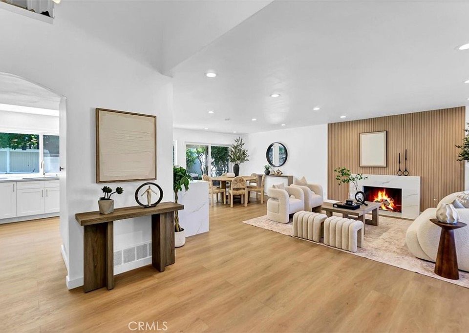 Welcome to this fully remodeled luxury home, where no detail has been overlooked. The gourmet kitchen is a chef's dream, featuring a stunning Waterfall Island and premium appliances, including a Bosch cooktop and KitchenAid suite for ultimate performance. Throughout the home, you'll find elegant luxury vinyl flooring that seamlessly blends style and durability. A modern-looking fireplace adds warmth and sophistication to the living space, complemented by a striking solid wood and glass guardrail that enhances the home's contemporary aesthetic. The expansive backyard offers endless possibilities, with lawn sprinklers throughout to keep the landscape lush and ample space ready for a custom swimming pool and ADU. Enjoy the benefits of a low HOA, with the option to join Lake Mission Viejo, which offers access to a private clubhouse, yacht club, movies, and concerts on the private beach, as well as swimming and boat rentals. Perfectly situated just 5 minutes from major freeways, this home is also conveniently located within minutes of top-tier shopping and dining, including Trader Joe's, Pavilion, Starbucks, and the Mission Viejo Public Library. Additionally, you’ll be part of the renowned Saddleback Valley Unified School District, with all three highly rated schools—De Portola Elementary, La Paz Intermediate, and Mission Viejo High School—just two minutes away. This home combines modern luxury, convenience, and a prime location—don’t miss the opportunity to make it yours!
