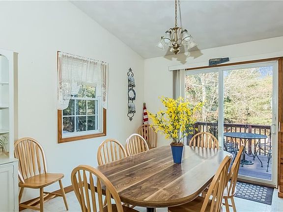 An excellent opportunity to own a home in Charlestown on over a private acre within minutes to all Charlestown amenities. This 3 bedroom, 2.5 bth home has an open floor plan on the main level. Cathedral ceilings and sky lights give it an airy contemporary feel. The living room, kitchen w/center island and dining area flow as one , the true hub of the home. The master suite , 2 bedrooms and a shared full bath complete the main living area. The lower level has a family room w/a woodstove and sliders that open on to the patio and pool area . A guest room /office and a conveniently located half bath complete the finished lower level . The laundry is located in the unfished portion of the lower level. Here you will find a ton of built in shelving for storage and a sperate door to access the backyard. Another sliding glass door off of the dining area leads you to a deck overlooking the backyard and pool area .