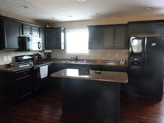 This 2013 built home just minutes from town offers black distressed cabinets,gas fireplace,wood in family room and kitchen.Bathrooms have dual flush toilets.Front porch is 6x50 and 12x12 deck on back. Basement can easily be finished.