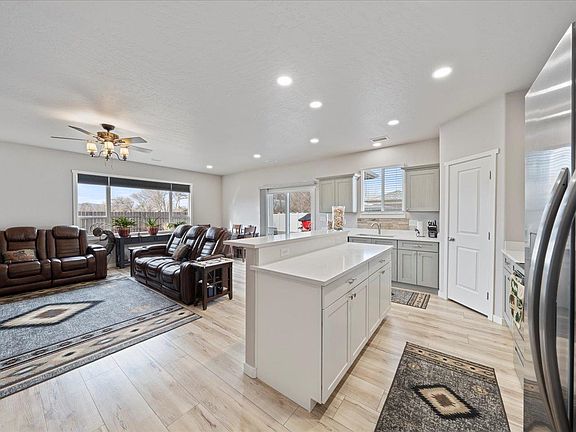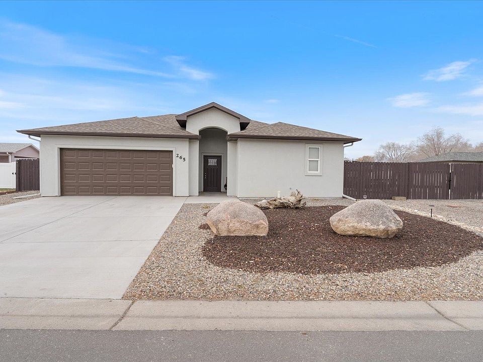 Beautiful, newer construction home backing up to City open space, with a great view of the Colorado Monument! With LVP waterproof flooring throughout, soft close cabinets, LED lighting inside and out, large laundry room, and more.... this home has it all. The kitchen boasts beautiful quartz counter-tops, stainless steel appliances, a large island, a walk-in pantry, and the option for gas or electric stove. Outside you will find a beautifully xeriscaped yard, oversized concrete patio to relax and enjoy the view of the monument, concrete patio and wiring for a hot tub, and a large 10x20 shed. The fully fenced yard contains a RV parking area, double gates in both front and rear give you the perfect access for your RV, boat, or other toys. Schedule your showing today to see this immaculate home and make it yours!