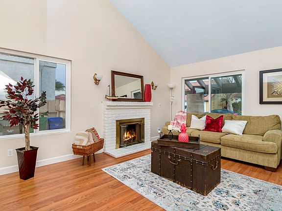 Upgraded Oceanside home with large, private back patio! High pitched ceiling and modern brick fireplace in entry living room. Dining area just outside of living room. Gourmet kitchen with stainless-steel appliances, plenty of cabinet storage space and a dining area. Generously sized bedrooms. Large vanity in master bath. Hard surface flooring throughout. Updated appliances. Freshly painted interior. Great natural light throughout entire home. 2-car garage with storage space. Fully fenced-in, all hard-scaped back patio with low-maintenance landscaping including a lemon tree.