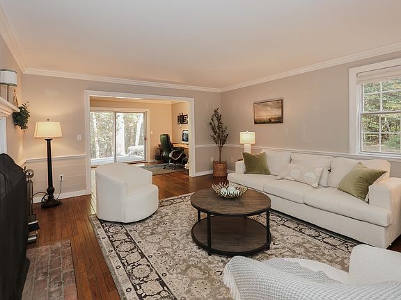Charming Saltbox-style home set on 7+ wooded acres in a quiet, sought-after Dublin neighborhood—just minutes from Route 101 for easy commuting. The picturesque approach to the home will excite you, as it is a true New England gem. This 3-bedroom, 2.5-bath home features a large two-car garage with stairs to an unfinished bonus space, so many possibilities! Enter a breezeway with cathedral ceilings, and imagine the convenience of first floor laundry. There is a spacious eat-in kitchen with a new pellet stove for additional heat. Enjoy hardwood floors in the formal dining room, an office, and a generous living room with an oversized fireplace for cozy evenings. Sliders lead to a back deck overlooking your private, wooded backyard. Upstairs, the primary suite offers its own fireplace and full bath, plus two more bedrooms and another full bath. Closets everywhere! A large basement offers even more storage and possibility for refinishing. The basement is also home to a new Rinnai boiler and water heater. Peaceful setting with the convenience of nearby amenities—this home has it all!