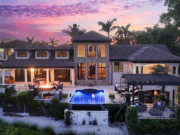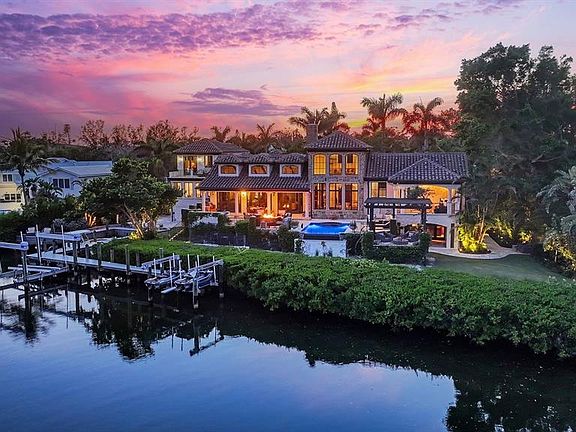 A truly exceptional waterfront retreat in one of Sarasota’s most coveted enclaves—Cedar Park Circle on North Siesta Key—this gated and private estate offers over 220 feet of prime bayfront with panoramic views of Cocoanut Bayou and Roberts Bay. Residents enjoy unrivaled boating access to the Gulf of Mexico and exclusive private deeded beach access. Spanning over 10,600 total square feet, including 6,500 square feet under air, this architectural masterpiece features 5 bedrooms, 5.5 bathrooms, and thoughtfully designed spaces across multiple expansive levels with an optional elevator if desired. Soaring ceilings, timeless finishes, and seamless indoor-outdoor living define the home’s coastal elegance. From the welcoming arbored front patio to the impressive wood-and-iron entry, every detail invites you in. Inside, the main living areas are designed for both comfort and grandeur. The foyer/sitting room opens to sweeping pool and bay views, while the massive great room impresses with an oversized stone gas fireplace, beamed ceilings, chandeliers, French doors, and a spacious dining area with custom built-ins. Around the corner, the newly renovated gourmet kitchen and den provide the perfect blend of everyday luxury and effortless entertaining. Here, you’ll find white-on-white custom cabinetry, quartz countertops, an 8-burner Wolf gas cooktop, dual SubZero refrigerator/freezers, a built-in Miele coffee system, and discreetly integrated conveniences like a second dishwasher and refrigerator. The adjoining den and breakfast nook boast tranquil water views, making this space an ideal private retreat. For the boating enthusiast, the property offers 150 feet of dockage, a 20,000-lb boat lift, two jet ski lifts, and a deep-water cut-in dock accommodating a 50’ vessel. After a day on the water, unwind on the expansive travertine-tiled back terrace with its teak summer kitchen, fire pit, multiple lounging and dining areas, and a saltwater infinity pool—all overlooking the bay. Hurricane-impact windows and doors, along with a new Dam Easy flood barrier, provide peace of mind. Private quarters are equally impressive. The luxurious master wing features his-and-her baths and closets, a dedicated exercise room or home office, and an outdoor tiled balcony—combining convenience, privacy, and resort-like amenities. On the opposite side of the home, three spacious guest suites each offer private balconies and baths. The ground floor grotto/media room with a full bar, wine room, steam bath, fifth bedroom, and two outdoor patios creates the ultimate guest haven. Additional features include dual laundry rooms (one on each wing), an oversized two-car garage with built-in storage, additional parking within the compound, and under-house storage. Designer landscape lighting, a four-zone heating/cooling system, and meticulous craftsmanship throughout ensure this residence is as functional as it is beautiful. This is a once-in-a-lifetime opportunity to own a one-of-a-kind sanctuary where private beach access, world-class boating, and timeless coastal luxury come together seamlessly at Cocoanut Bayou’s exclusive waterfront enclave.
