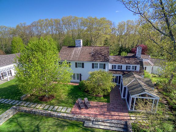 This classic expanded Cape design, situated in an ideal south side neighborhood, is perched on an elevated site and enjoys privacy in all directions.The façade of whitewashed brick and the cedar shake roof bespeak the Country Cape Cod style.Enlarged some 12 years ago by noted architect Ann Beha, the residence now offers over 7,000 square feet of living space with great ceiling heights.The house offers four bedrooms and five full baths.The expansive first-floor master suite includes a large sitting room/office with gas-log fireplace, his and hers baths and walk-in closets and a large bedroom with cathedral ceiling and French doors to the patio and grounds.The country kitchen features basaltina stone countertops, top-of-the-line appliances and access to a large patio with southern exposure.The adjacent family roomhas a wood-burning fireplace.Mechanicals are first-rate and have been meticulously maintained and offer highly sophisticated "smart" house technology.The propertyadjoins the 21-acre Deer Path Lane conservation area which enhances privacy and leads to the Weston Forest and Trails system.
