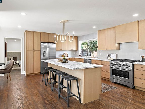 NORTHGATE NEW TO MARKET! Fully renovated 4BD/2.5BA SINGLE STORY on 0.25-acre lot with designer finishes throughout. Dramatic living room with vaulted ceiling, gas fireplace, and poolside view opens seamlessly to the expansive new kitchen. The kitchen features porcelain counters, natural white oak cabinetry, a large island with seating, new stainless appliances, and dining nook with courtyard view. The family room includes a gas fireplace, with custom tile, and slider to backyard. Luxurious primary suite with pool access and spa-inspired bath. All new secondary baths with quartz and custom tile. Oak hardwood floors, indoor laundry with half bath, modern entry, and gated courtyard, perfect for morning coffee or evening entertaining. Backyard includes a pool, patio, pergola and lawn/play area. Walk/bike to Northgate schools, swim clubs and shopping.