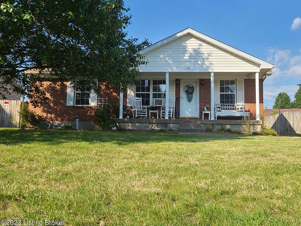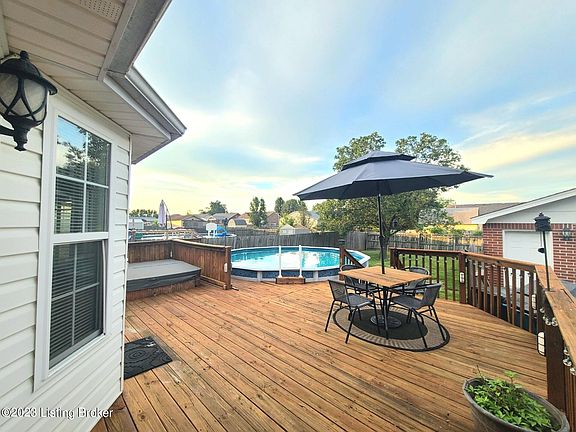 Welcome to this well maintained 3 bedroom 2 full bath home in Bullitt County. Living room has vaulted ceiling and dark laminate flooring throughout. Kitchen has been slightly updated with freshly painted cabinets , tile backsplash. Spacious primary bedroom with large bathroom and linen closet. Outside you will find nicely manicured lawn with an fully fenced backyard and an above ground pool with a hot tub as bonus so you can enjoy the outside all year long.