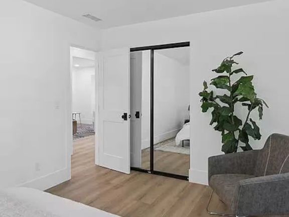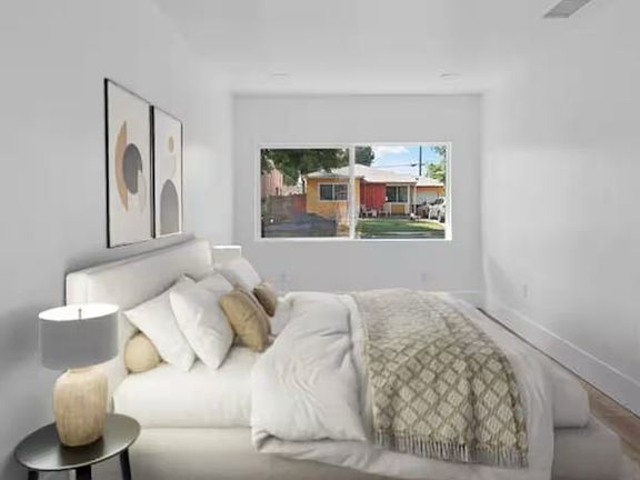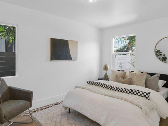 This private, furnished bedroom offers comfort and style with fresh paint, brand-new hardwood floors, and large windows that let in plenty of natural light. The room includes a queen-size bed, spacious closet, desk, and smart TV perfect for students or young professionals.