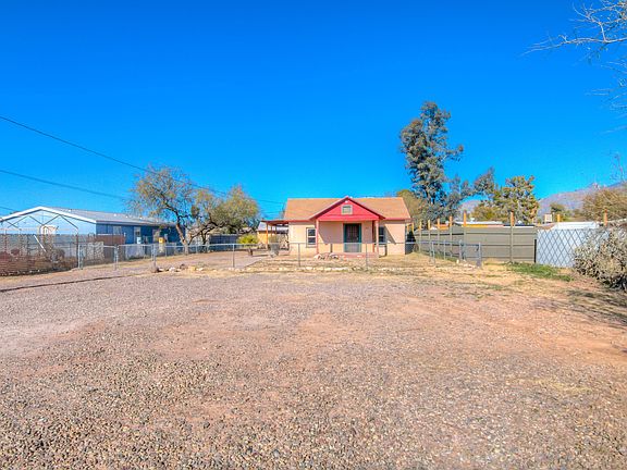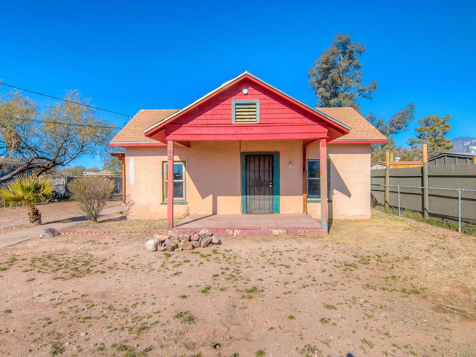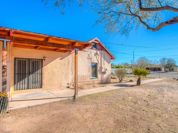 This property is a fantastic opportunity! Primary residence is 1100 sq ft with 2 large bedrooms and 1 bathroom with an eat-in area off of the kitchen. Property features plank ceilings and exposed beams for a great vintage feel and also has concrete/saltillo title/ceramic tile flooring. Wraparound patio extends from the back of the home to the side and provides plenty of shade and room for relaxation. Large shed in backyard has ample storage room for all your toys and tools. In addition this lot is zoned R2 which gives you the option of adding another residence on the property! Located near I-10, bus lines, restaurants, shopping and much more!