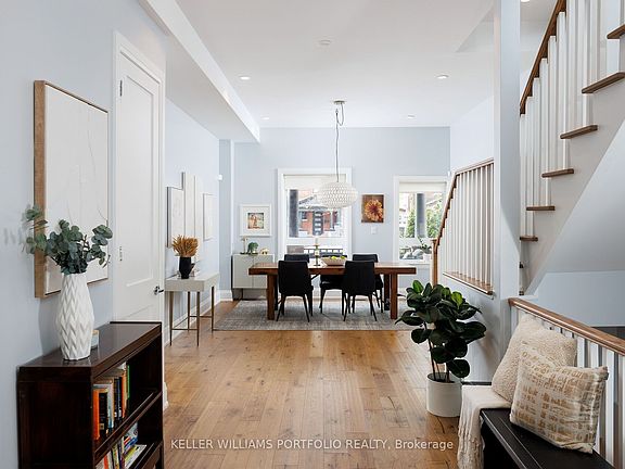 A Masterpiece in Junction Village - 265 Evelyn Ave, welcome to this sensational family home. Offering over 4,000 sq ft of finished living space on an incredible 170-ft deep lot, this home blends timeless charm with contemporary luxury-every detail thoughtfully curated. Step inside to soaring 10-ft ceilings on the main floor, expansive open-concept living and dining spaces, and custom window treatments throughout. The chef-inspired layout and generous flow make entertaining effortless, while the deep, beautifully landscaped backyard-with stone patio, irrigation system, and programmed lighting-creates a private outdoor escape. With 4+1 bedrooms and 5 beautifully appointed bathrooms, the home provides space for families of all sizes. The luxurious primary suite features a spa-calibre 5-piece ensuite with heated floors, while the finished third-floor loft offers the perfect flexible retreat for a home office, studio, or kids' hideaway. The finished basement, complete with 7'+ high ceilings, gas fireplace, full bathroom with shower, and separate entrance, offers exceptional potential as an in-law suite or income-generating apartment. Additional highlights include legal front pad parking, exceptional craftsmanship throughout, and a street lined with long-term, pride-of-ownership homes. All within walking distance to the vibrant Junction's cafes, restaurants, shops, and top-rated public and Catholic schools. A truly magical home-every detail perfected. Your Junction Village paradise awaits.