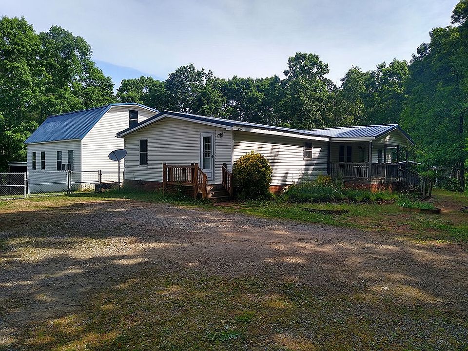 4 miles from I-85 convenient to Gaffney & Spartanburg. Secluded 1500sq' double wide with metal roof, brick underpinning, granite kitchen countertops, & hickory cabinets with a wide open floor plan. Includes a 32'x24' shop/man cave with an upstairs attic space for storage, 16'x24' boat shed, 2 tool/wood sheds 18'x21' and a metal carport 18'x21' in driveway. Sits on 2.92 acres that could be divided for another home. We have the entire back yard enclosed with chain link fence for our German Shepherd to have room to play. Price includes new paint and a new refrigerator or will consider offers for an "AS IS SALE" if interested. We just moved out and have not prepped the home for sale yet. Interior needs paint and the the exterior needs some maintenance.