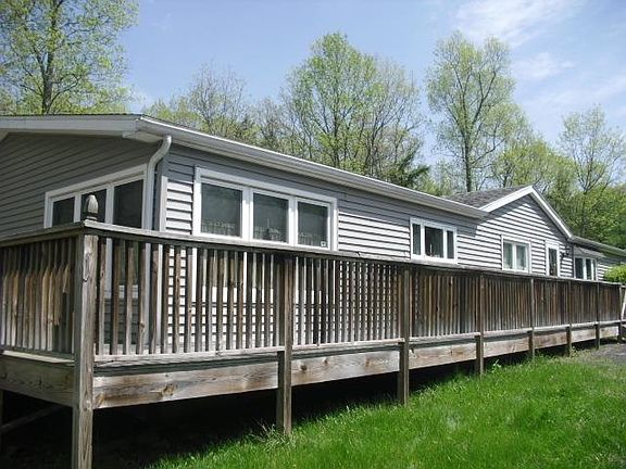 This manufactured homes in private country setting is one of the most solid you will find. Exterior walls are 2x6 construction covered with highest quality 5/8 sheetrock. Tons of room in this beautiful home. Den, family room, living room, dining room and dining area, big kitchen with handy pass through to living room. The most sumptuous master bath, 2 fire places, alarm system, clean oversized 2 car garage, very private wraparound deck with impressive mountain views. Great varied land with stream and pond.