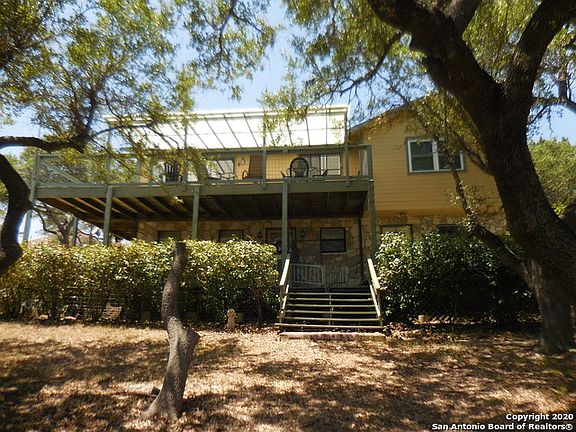 A MUST SEE! Classic Home sits on 0.7 acres lot with Lake Views in a quiet neighborhood. Recent upgrades include Porcelain Tile Flooring throughout, pleated shades and vertical blinds on 1st floor. Remodeled 2nd story deck with Lake Views. A New Spiral Staircase. The Main Living Area with Primary Bedroom and Bath sits at street level. Also 2 Bedrooms with Workshop and Utility Room and Office and a huge back porch on the lower level. A few updates will make this home perfect for Family or Weekend getaways. Minutes from Canyon Lake Boat Ramps, Hill Country Wineries, , Austin, Wimberley, Gruene, UT And TSU all close by and THE BEST TUBING IN TEXAS!
