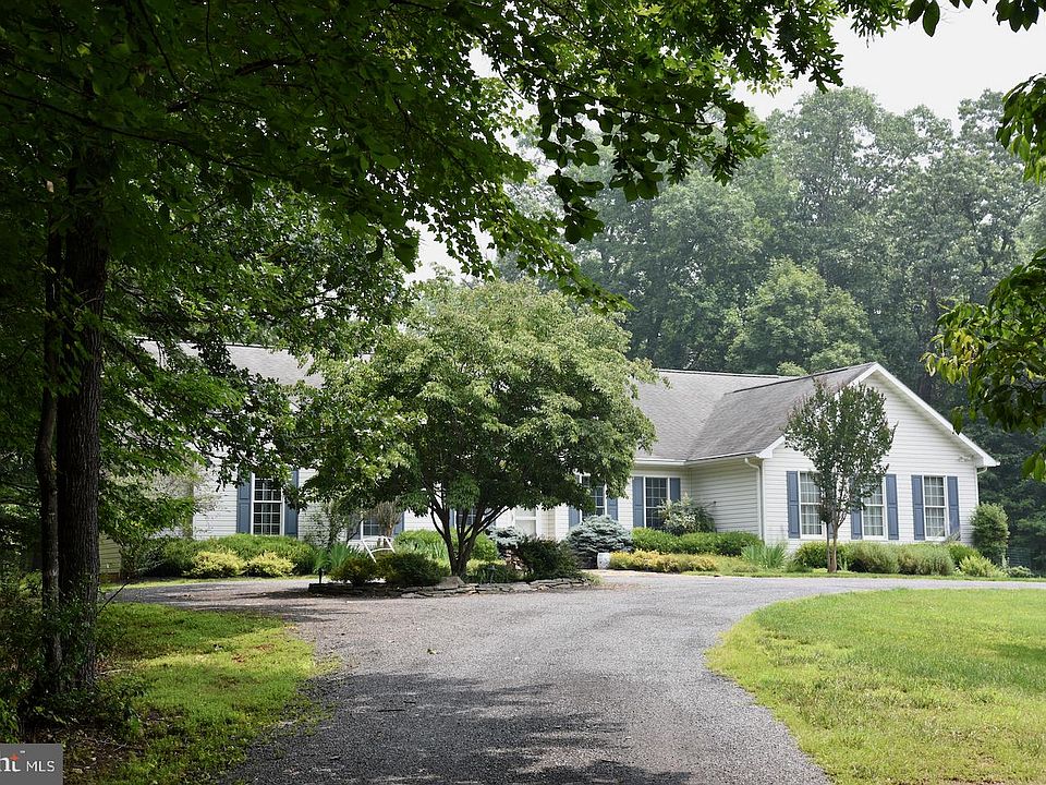 Rush River Retreat is a sensational combination of privacy, convenience and a delightful natural setting. High on a bluff above the Rush River, the four bedroom, two and a half bath home is sited at the edge of the forest on the lightly traveled, state maintained dead end road, but it is a quick drive to Little Washington and Sperryville. The home features one-level living with a well-designed floor plan, tall ceilings, hardwood floors, delightful outdoor spaces, spacious rooms, lovely landscaping and frontage on the Rush River all on a 6.8 acres lot. The home has comfortable outdoor spaces and wide windows overlooking the forest of this lovely natural environment. There are winter views of the Rush River below and the Blue Ridge on the horizon with no other houses in sight. Night skies are truly dark.