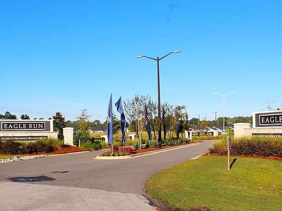 You have to see this Morgan floorplan with its stunning exterior elevation and waterfront lot! With 3 bedrooms, 2 bathrooms, and a large study, this 1,702 sq. ft. home much space to love. Enjoy the privacy of the study with the added glass-pane doors and your screened-in lanai to make a backyard oasis. The kitchen is stunning with its upgraded grey cabinets, white quartz countertop, white backsplash, and stainless-steel appliances. The owner's suite features a lovely bathroom with double vanity and walk-in shower. Flooring in the gathering room, kitchen, cafe, and foyer has been upgraded. This home already has gutters, a full yard irrigation system, full sod and landscaping to save you time and money! Your amenities include a 2200 sq ft +/- salt water pool, 2 pickleball courts, a wood burning fire pit by the water, and a pavilion with restrooms for your use. Pulte is a reputable builder who stands behind their homes with an industry leading home warranty. Making this house your home in Eagle Run may be the best decision you have ever made! Plus, it is located within 30 minutes of 60 golf courses, 15 minutes from multiple beautiful beaches, and 5-10 minutes from all your shopping needs.